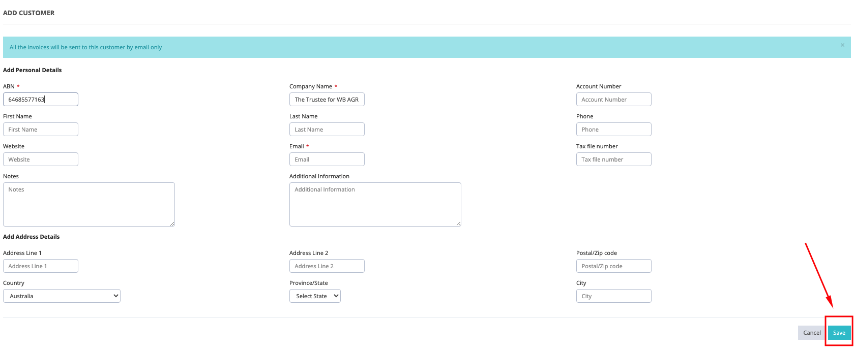 Step 3: Fill in the form, enter all the required details especially the fields with red asterisk (*), then click "Save".