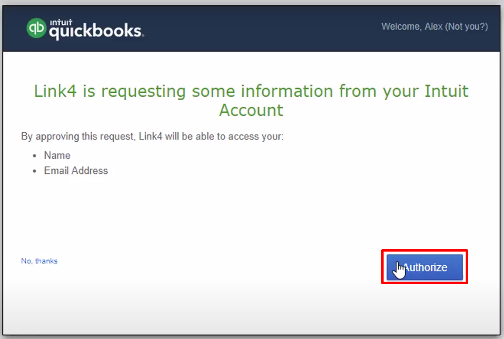 How to connect Link4 to QuickBooks Step 1 Log In or Sign Up to Link4 Step 2 Select “QuickBooks” from the Accounting Software selection page. Step 3 Sign in to QuickBooks and click on the "Connect" button to authorize Link4 access to your QuickBooks ...