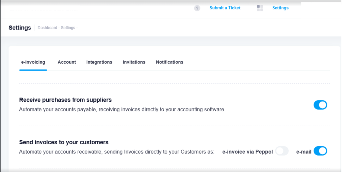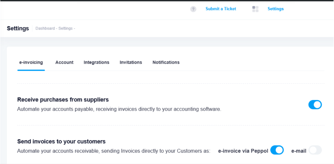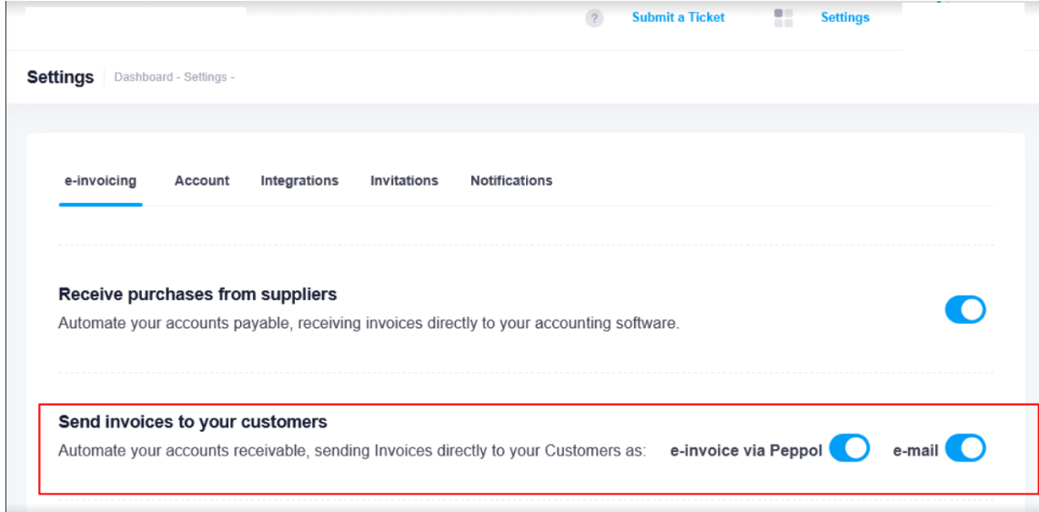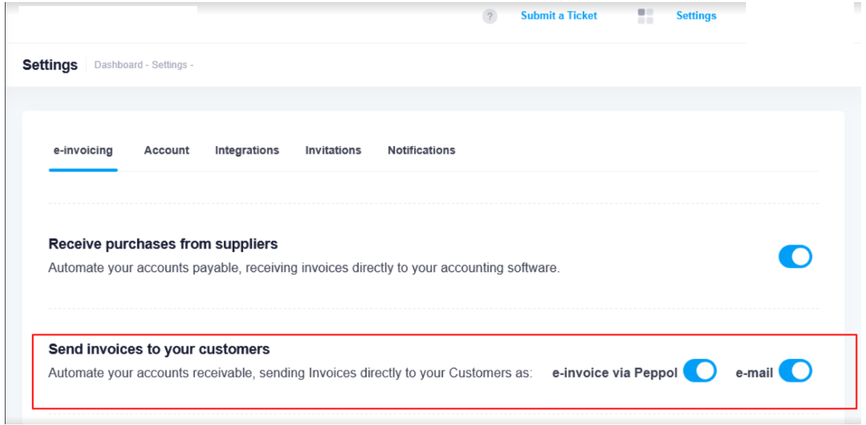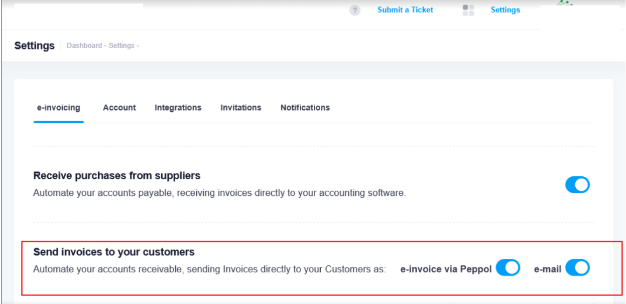 Only “e-invoice via Peppol” is enabled: