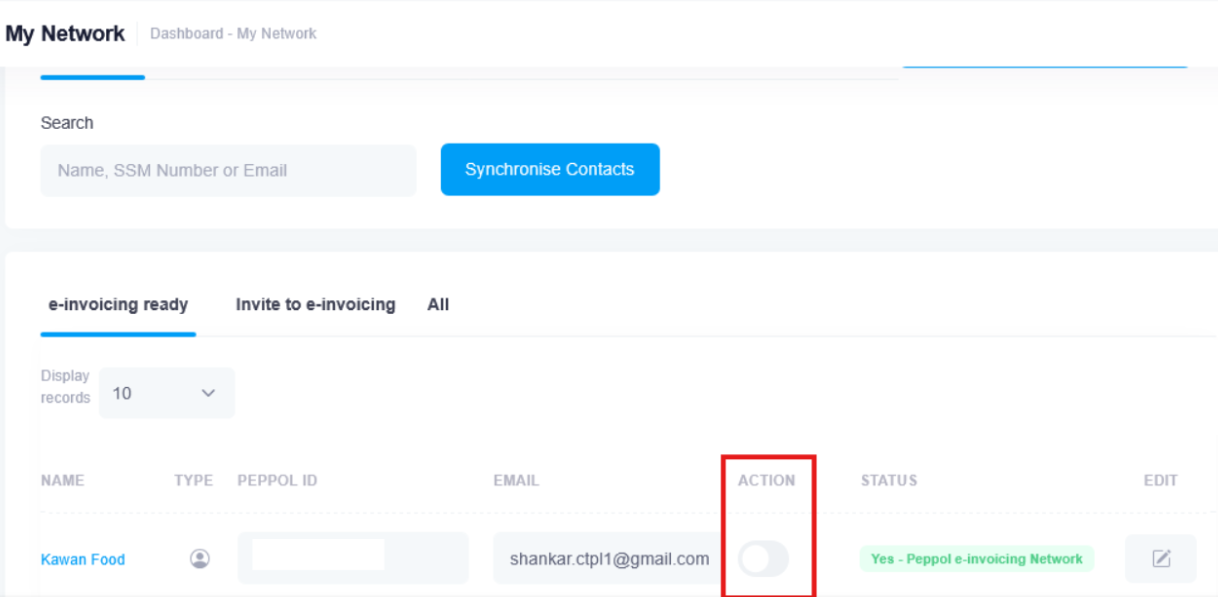📌 Note: To disable Peppol for a specific customer, you must ensure that the customer is listed and maintained in your My Network page.