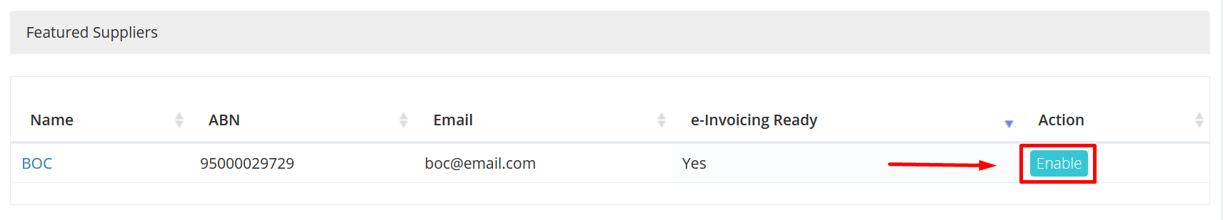 Step 8 Connect with BOC in Link4 and receive e-Invoices by clicking on the "Enable" button.